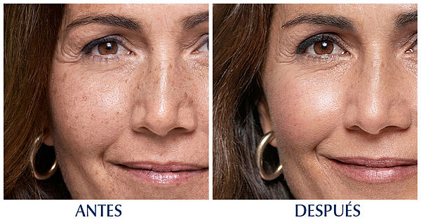 Está formulado para mejorar la apariencia de manchas solares, tono desigual y marcas superficiales. Los resultados pueden variar según el tipo de piel.